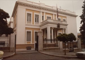 The exasperated minister, Percy Loraine, persuaded himself and his staff that the whole legation, including his own residence, could operate from a new suburb of Athens called Psychico, about seven kilometres from the centre, where land was cheap and the cost of buying and building anew could be recovered from the sale of the Dragatzani Street house. The Office of Works was doubtful that a legation so far from the city centre would work in practice, but the Foreign Office was prepared, on balance, to take Loraine’s advice. Several contiguous sites, comprising about five acres, were bought in March 1929. Shortly afterwards, Loraine was posted to Cairo. His successor, Patrick Ramsay, put a stop to the Psychico venture. The English Preparatory School was later granted use of the newly-acquired site as playing fields and it was finally sold in 1949 for £4,410 to Mr a WR Rees.