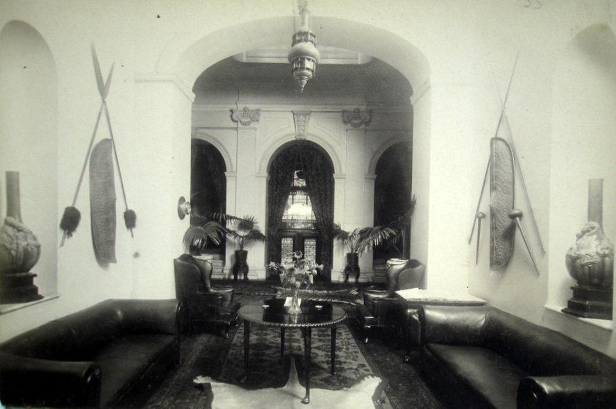 Construction of the house started soon afterwards and was completed in 1894. Various design changes and additions were incorporated, including building a (somewhat clumsy) veranda along the garden front at first floor level and enlarging the kitchen and servants’ wing. A separate block for stables, coach house, grooms’ quarters and stable yard was included. These changes brought the final cost to just under £40,000. Two years after completion, the basement floor level had to be raised to prevent the basement flooding during the high Nile season. Around that time, too, Baring signed an agreement with Thomas Cook and Son allowing the tour operator to use the bank as a landing place for steamers and a mooring for motor boats.