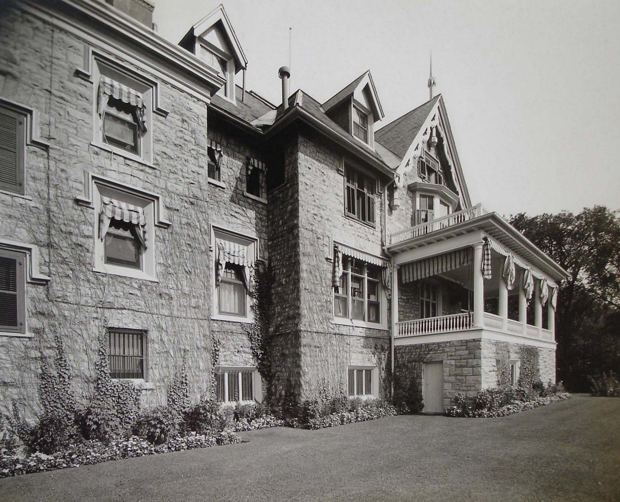 Thomas McKay, a Scotsman, arrived in Canada in 1817 and became a wealthy contractor, mill-owner and politician. In the 1830s, he bought a thousand acres of land that became known as Rockcliffe Park and built Rideau Hall for himself on part of it. In 1854, the year before he died, McKay sold rather over an acre of his land on the western side of the Rideau river to his son-in-law, John MacKinnon, who had married the eldest of his sixteen children. MacKinnon completed a house on this site in 1857. It was ‘a sensible Scots-type family house with three storeys and a basement, built by Scots masons for a Scots emigrant who had done well for himself.’ The ground floor consisted of three good but unpretentious rooms and two small rooms, the first floor of four bedrooms for the family, while the basement and attics housed the servants.
