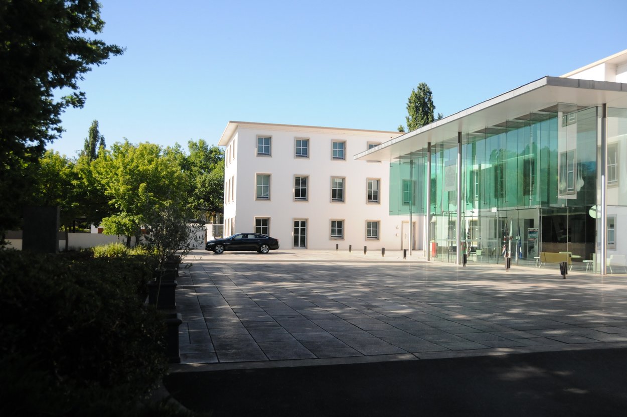 Apart from the conversion of the lower ground floor of the 1952 block from garaging and storage to office use, the offices building underwent no significant change until a major refurbishment programme in the mid-1990s. The staff decanted into rented offices in the nearby Old Parliament Annex for the duration. The programme included moving the main entrance from the Commonwealth Avenue side of the building to a large new atrium built at the rear. The architects were Mitchell/Giurgola & Thorp, and the project managers were Integrated Construction Management Services. The renovated building was opened jointly by Prime Minister John Howard and high commissioner Sir Roger Carrick on 5 February 1997. At this time, also, a porphyry sculpture was commissioned from Stephen Cox and installed in the garden ‘In tribute to shared sacrifices of British and Australian men and women in the defence of freedom’.