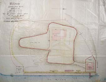 A site for a consulate at Wuchow was acquired in 1898 by perpetual lease: unusually for a river port, it was not on the bank but on the top of a hill on the west side of the Fu-Ho and West River junction. The lessors were the local gentry and owners of graves (which were subsequently removed). Another small piece of land was added later. In 1900, Cowan completed a consul’s bungalow on the hilltop and a two-storey building for offices and constable’s quarter near the bottom, with extensive steps between the two.