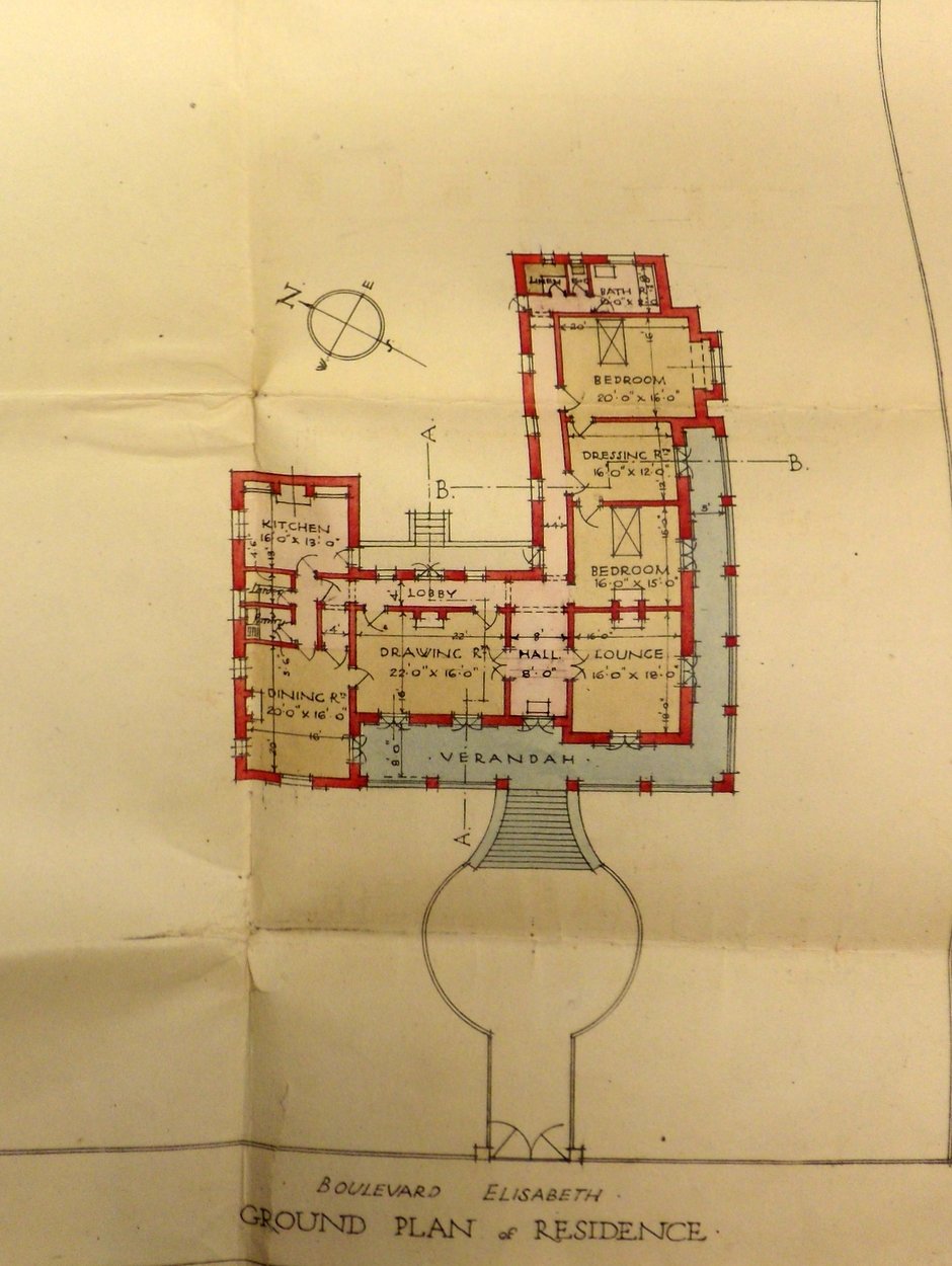 A site, Plot 52a Boulevarde Elizabeth, was leased in 1912, and the building on it adapted for use as a vice-consulate, at a total cost of about £1,200 plus a small annual ground rent. It was a poor acquisition, made by the vice-consul, Gerald Campbell, whom the Treasury repaid. A small compound for the vice-consulate’s native staff was bought nearby in 1916, and new buildings built there in 1931. In 1919, the site next door to the vice-consulate, at the corner of Boulevards Elizabeth and d’Etoile, was bought from Tanganyika Concessions Limited, and a new residence built on it in 1920, to the design of Thrift Reavell in London, at a total cost of about £8,000. Neither was this a satisfactory acquisition because the local architect/contractor, Brown, reduced the overall dimensions of Reavell’s design by up to 20%. Subsequent consuls therefore found it too small. [?later]
