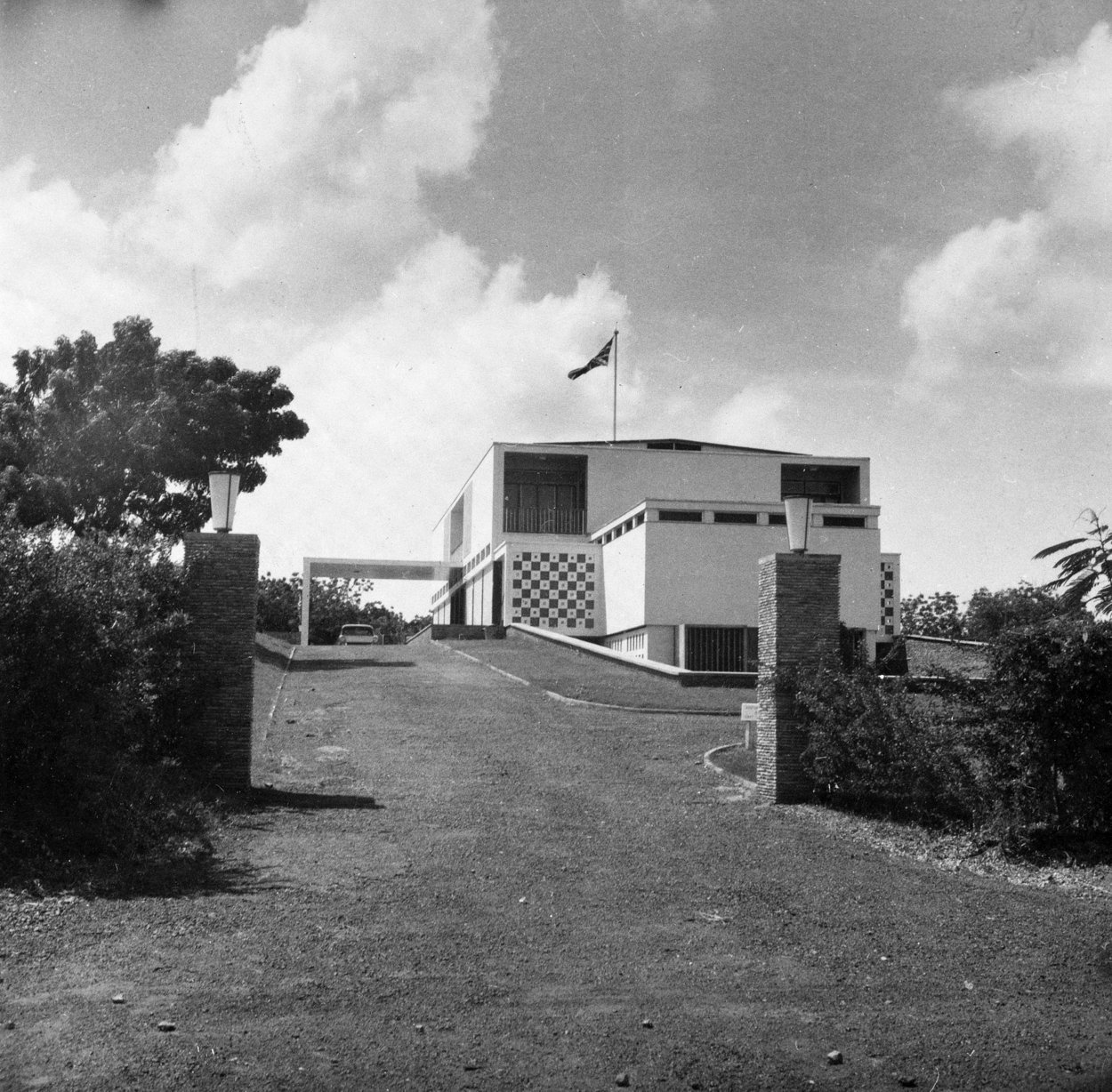 A site of about 3½ acres on which to build a residence was taken on a 75-year lease from 1956 (amended by new legislation in 1992 to 50 years from 1969) on Plots 14a and 15a, Cantonments Circle. The residence, designed in-house by architects of the Ministry of Public Building and Works, was completed in 1959 at a cost of about £73,000, including furnishings. A swimming pool was built in the garden in 1980. The flat roof was replaced by a pitched roof during a major refurbishment in the 1990s.