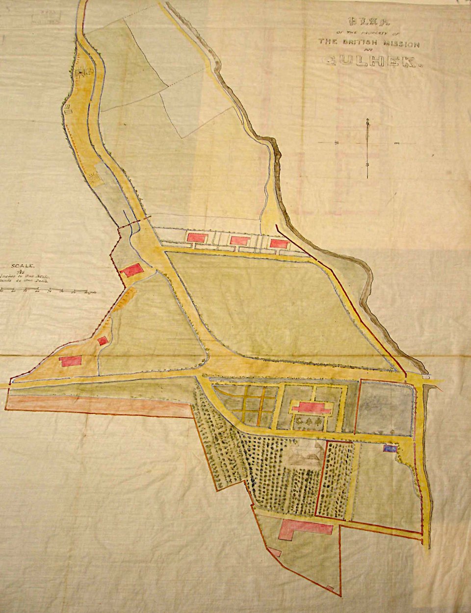 Lt. Pierson’s plan of Gulhak, 1865, with minister’s house (A) and line of three staff houses.