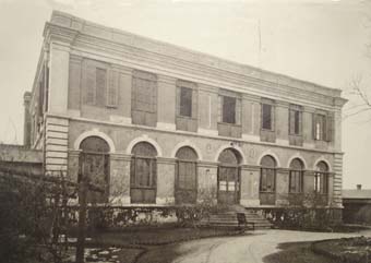 Main frontage of the Supreme Court in the consular compound at Shanghai. Behind the court rooms are the offices of both the Consulate and the Supreme Court. The building dates from 1871-3, when it was rebuilt by Robert Boyce after the fire of 1870.