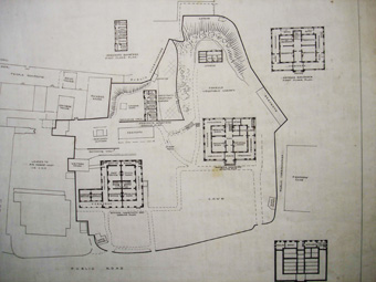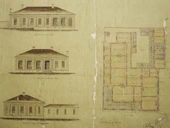 Wilberforce Wilson’s 1864 layout for the consular compound on the Bund at Ningpo. Consul’s residence and an office/assistants’ quarters building flank a gatehouse, with a prison block directly opposite and interpreter’s and constable’s quarters at the rear.