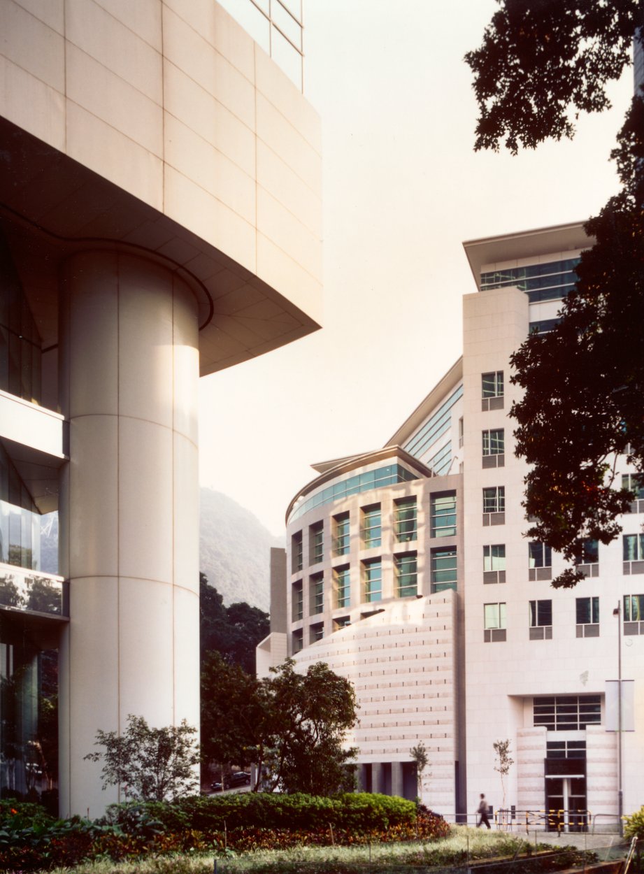 Assessment of the competition entries was unusually straightforward. Most of them offered variations of Hong Kong’s normal manner of arranging a slab block on a site. Only Terry Farrell proposed a radically different approach: his concept of building around the curved lower perimeter of the site, thereby finding an urban as well as an architectural solution, brought numerous other advantages of identity, access, economy, landscape, privacy and environment. The Farrell design was selected, and Ove Arup appointed as structural and services engineers, and Widnell as quantity surveyors.