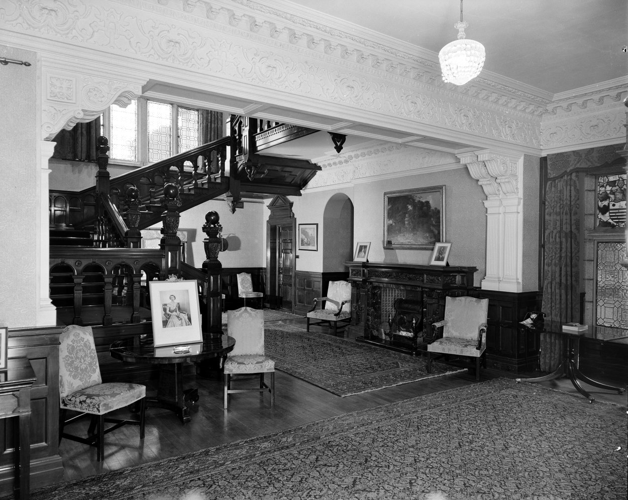 Attention wandered away from Glencairn during 1950 because the search changed to land on which to build a new residence. The grounds of Leopardstown Park Hospital were favoured, not least because they were owned by the British Ministry of Pensions, but there was no momentum. Sir Walter Hankinson succeeded Laithwaite in 1951 and started another search for a country house, the Farmhill lease having once more been renewed. He was in turn succeeded in 1955 by Alexander Clutterbuck, whose wife was so incensed by the drawbacks of Farmhill that yet another search was instituted. It succeeded in 1955 in re-identifying Glencairn as the front runner, then standing in about 33 acres of ground, about half of which was leased for grazing. The Treasury gave approval for its purchase within £30,000 in mid-1956, with further provision of about £5,000 for necessary ingoing works. The purchase, from Mr and Mrs Michael O’Neill, was completed in 1957.