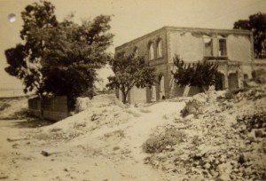 The consular compound was a long rectangular strip running between the quay and Frank Street, with the Austrian consulate as its southern neighbour. By the 1880s, the buildings had fallen into such disrepair as to be unfit for occupation. They were all rebuilt (excluding a chapel but including a post office) in 1892-3 at a cost of about £7,000, including £138 for furnishing a State reception room in the residence. The American consul-general took care of these buildings in 1916 for the duration of the war. Smyrna was occupied by the Greeks when they invaded Anatolia in early 1921. It was regained in September 1922 by the Turks, who promptly burned down almost the entire Christian quarter . The consular buildings were devastated, though the prison and post office survived intact. The walls of the residence ruin were later demolished to one metre height and the damaged boundary walls were left to mark the boundary of the site. The consulate itself moved into leased premises at 47 İngiliz İskelesi.