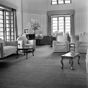 The status of the Post was raised to a legation in 1923. The second Residency was seriously damaged in the great earthquake of 1934 and finally demolished in 1940. It was replaced by a new legation building in 1942: a spacious, colonnaded minister’s residence of more modern appearance, with the legation office in a rear wing.