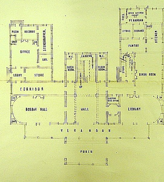 The Residency was re-built (for reasons not yet fully identified), on or beside its original site, in 1884, in a Victorian, English villa brick style, with metal sheet roof. This second Residency was also enlarged, around the turn of the century, by a wing with a large first floor terrace and a simple three-storey brick tower.