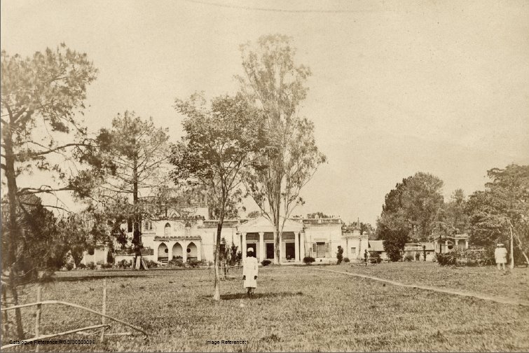 The first permanent British Resident in Nepal, sent by the East India Company in 1816, was Edward Gardner. The Rajah gave him the use of a piece of land (extending to about 44 acres) in an area later known as Lainchaur, just north of Kathmandu, on which to establish his Residence. Here, rather an elegant-looking neo-classical Regency villa, with central pediment and symmetrical wings finished with white stucco, was completed soon afterwards at the Company’s expense.