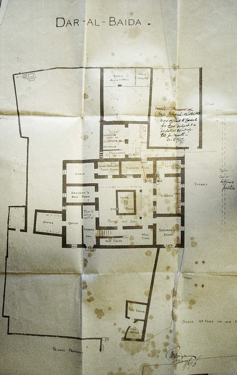 The early consulate was in rented premises. The site for a new consulate-general was acquired in 1915, when the Moorish government authorised the transfer to the Office of Works of part, comprising 3,789 square metres, of the Moorish Garden, known as Arset-Ben Chekroun, just south of the Batha Palace and just west of the rented consulate. An undated design was produced by a local architect, Professor A Manasso, but was presumably cast aside. Building work was deferred and the overgrown site was used by the consul as a garden, out of which he also hewed a hard tennis court. The Office of Works produced its own design in 1925, much as Boyce would have done it, for the residence with a deep verandah on three sides round the dining and drawing rooms on the ground floor and three bedrooms on the first floor. The consular offices and post office were in a one-storey strip facing the house across the entrance courtyard. The contract was let to La Société des Grands Travaux de Marseille in November 1925 and was completed in 1927. A zinc-lined concrete box was buried with apposite and revealing documents, including a crossword and a history of the consulate [according to the Rio file, WORK10/120, in The National Archives at Kew]. A small extension to the site was authorised in 1953. The post closed in 1962 and the building was sublet to the Save the Children Fund. The post re-opened in 1968 for [how long?] at the end of which period the building was sold. The building is now incorporated into the Batha Hotel.