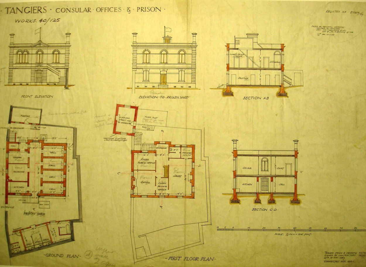 The Post became a legation in 1860. In 1863, a Captain Fitzroy Somerset sent his Commanding Royal Engineer in Gibraltar a report and current plans: the part of the site that lay across the street was now a full stableyard and the livestock house contained the stables. Robert Boyce, principal architect and surveyor at the Office of Works, visited Tangier in 1887 in response to pleas for a proper drainage system and concluded that a new site should be bought on which to build a new legation house, that the present house should then be sold but the stableyard should be retained and developed for consular offices and a gaol.