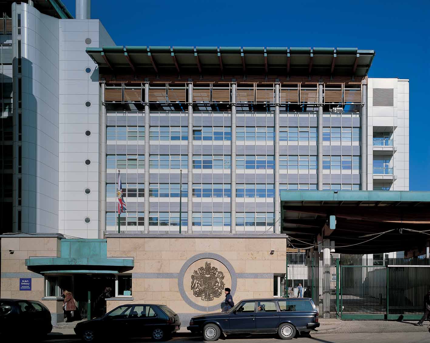 The security strategy that had underlain the negotiations with the Russians, and was designed into the scheme from the outset, was put into full effect. An inner security perimeter was built around the classified offices block into which only vetted British labour ever had access. All of the construction materials and elements for this block were shipped from the UK in containers to Helsinki and driven to the site in Moscow as diplomatic bags, immune from examination or tampering.