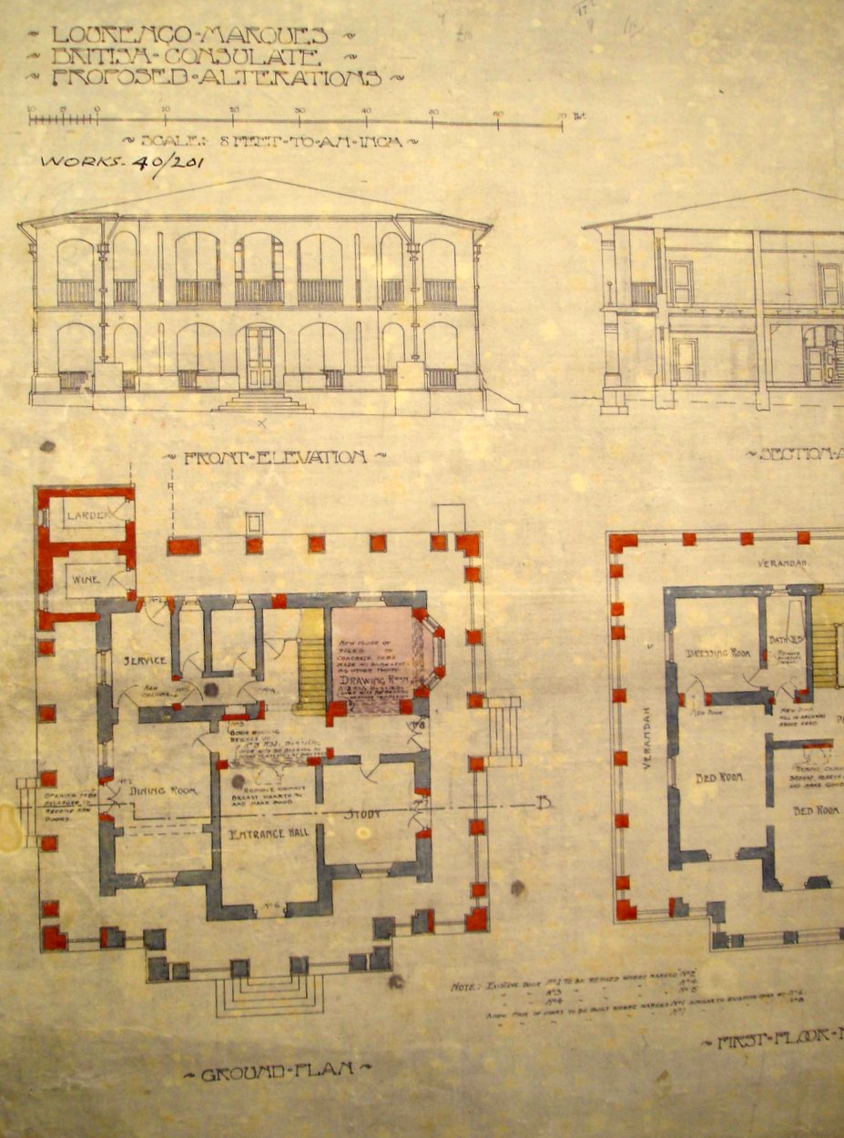 At the Treasury’s suggestion, the Lourenço Marques consulate was administered by the Transvaal government from 1904-08. An architect from the Department of Public Works at Pretoria inspected in 1904 and recommended, among much else, that a two-storey veranda should be wrapped around the three sides of the house that did not already have one, in ‘Aldershot/Bangalore’ style as the ambassador described it in 1989. These works were done, with £1,000 contribution from Imperial funds to supplement Colonial funds, during the years under the Transvaal government.