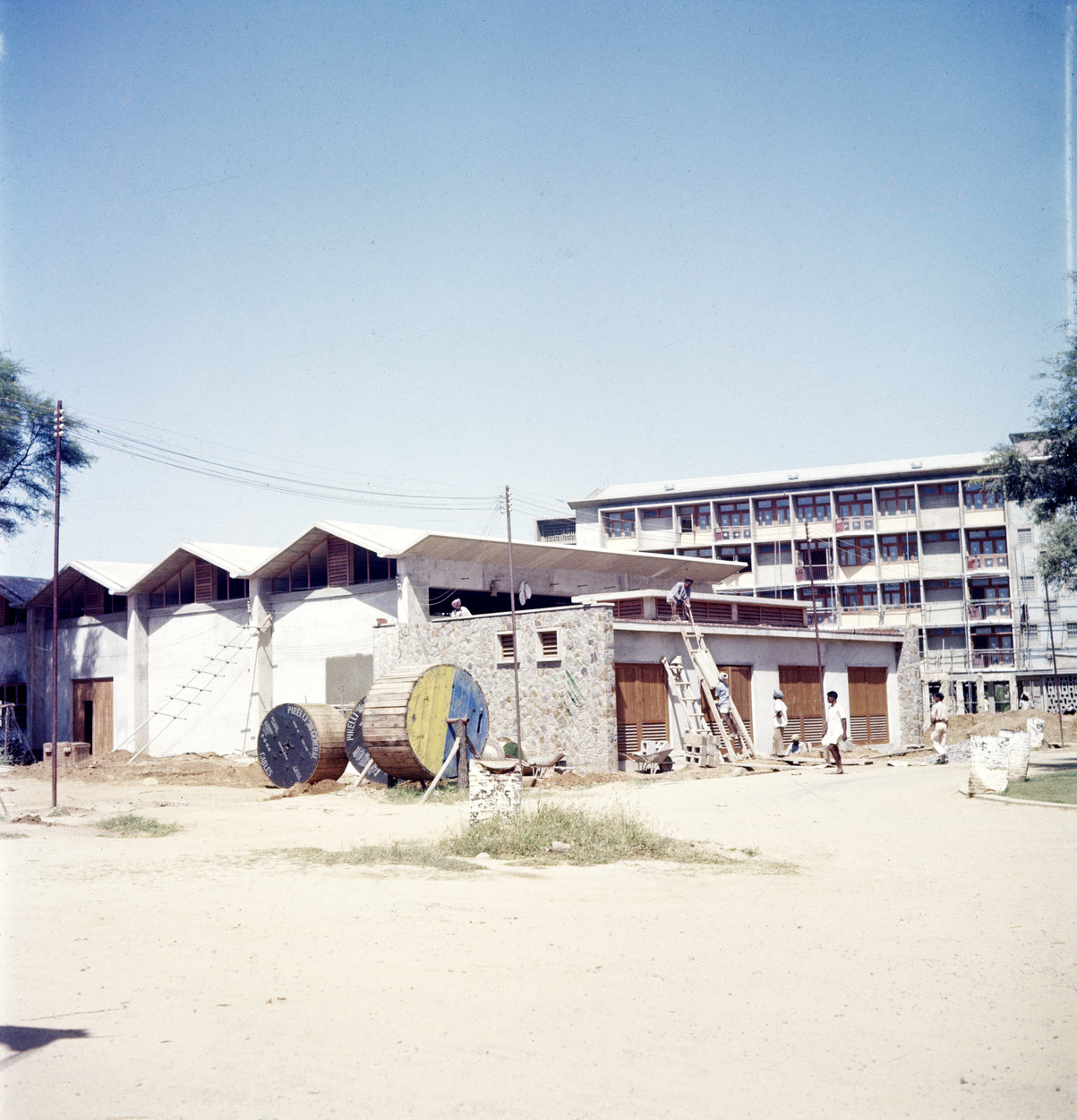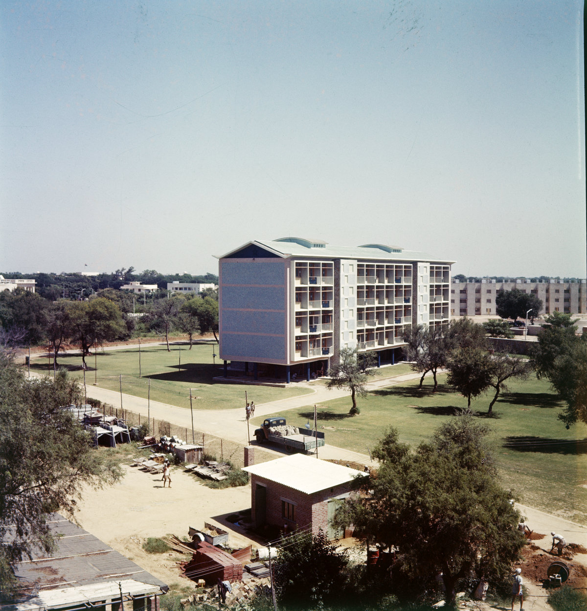 There were no UK contractors working in India, nor Indian contractors who could be sufficiently relied upon, so the Ministry of Works opted to build the compound with a large directly-employed labour force under its own supervision and to accept full financial responsibility.