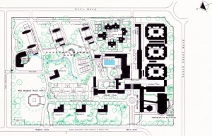 Six first secretary houses, by Raj Rewal, were completed in 1998 alongside Western Avenue (the original office-residence site spine: later called Queen’s Walk). Debate turned once again in the early 2000s to building the residence on its originally allocated site, and David Chipperfield was invited to put forward a sketch proposal in 2005, but it did not progress. Nor, after years of prevarication, did proposals for a separate Department for International Development building within the compound. [Present positions?]