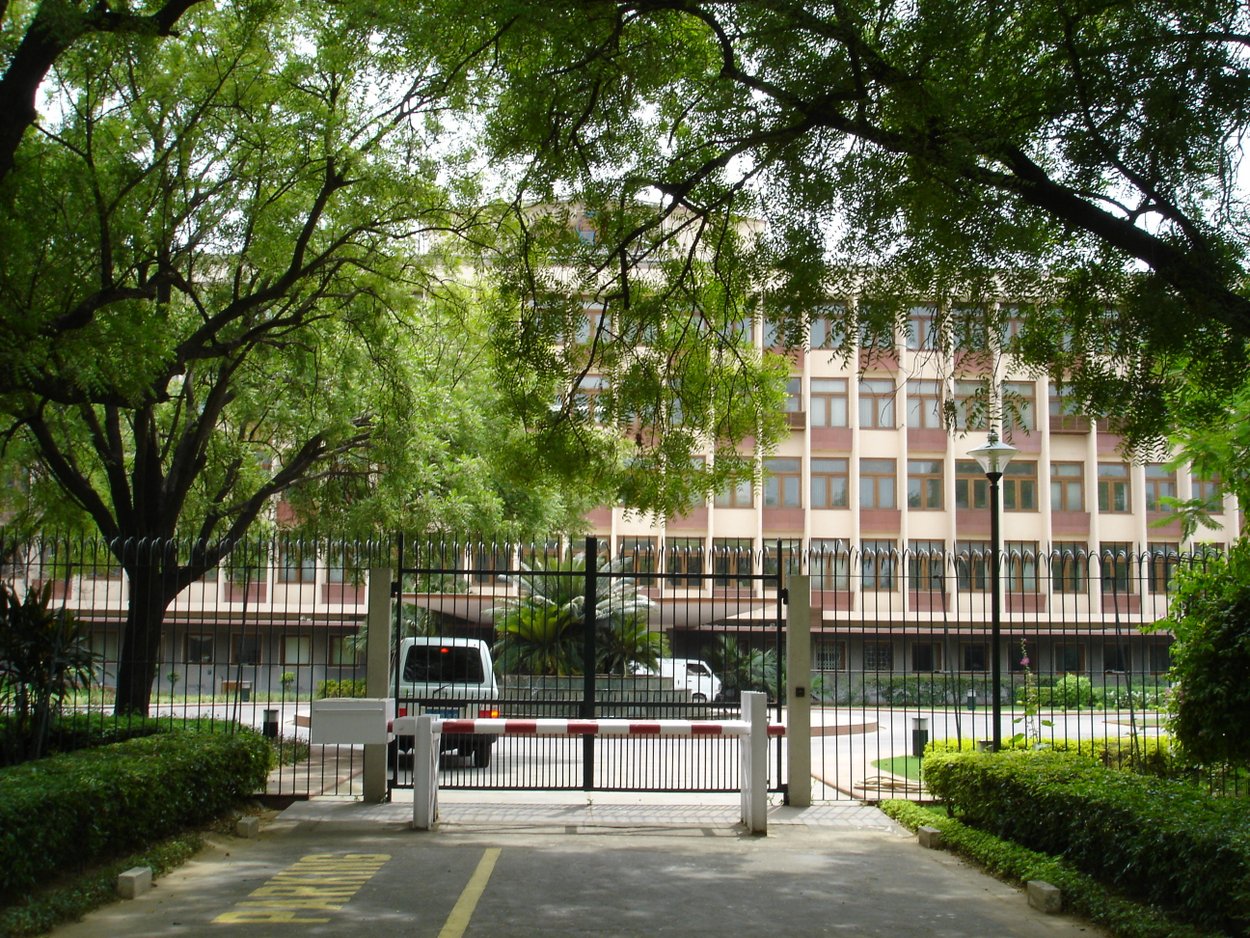 In parallel with these developments, the circulation system within the compound was much improved, mainly by the removal, early on, of the third roadway that ran north/south through the centre of the compound. This, with the demolition of the long-disliked Dorset House, enabled the centre of the compound to be opened as a green lung, re-landscaped (by local consultant Sujata Kohli) and the stream re-modelled. A new pedestrian walkway was inserted that wove its way through the lung from Antrim House to the amenity centre. The security arrangements, of course, were being tightened throughout this period in many ways. The steel fencing, designed and specified in a hurry in 1986 by Clive Newey, was first erected at New Delhi, and thereafter became known as Delhi railings.