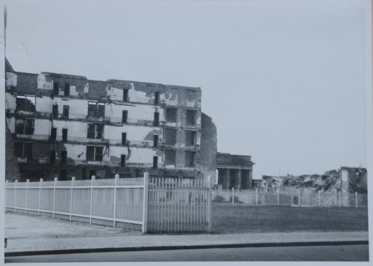 What remained of the Palais Strousberg after it was bombed in 1943 was demolished in 1951 and the site on Wilhelmstrasse (re-named Otto-Grotewohlstrasse in 1964, after a recently-deceased GDR minister) was used as a carpark for East German officials and, after 1961, lay untouched in the cordon sanitaire on the East side of the Berlin Wall. The consulate site at 17 Tiergarten, in West Berlin, was likewise eventually cleared of rubble in the mid-1950s. In 1958, the Foreign Office tried to persuade the Ministry of Works to acquire three plots of land adjacent to the consulate site on which to build embassy offices if and when a British embassy came to be re-established in West Berlin in the future. The Ministry would go no further than agreeing in principle to secure cost-free options on the sites: the idea fizzled out and the site was disposed of to the authorities for about £200,000 in the early 1980s.