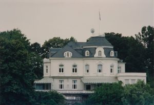 In addition, the Berlin Senat bought the large house at 10 Hohmannstrasse in 1957 so that the British ambassador at Bonn, who was also high commissioner of the British Sector of Berlin under the Four Power arrangements for the city, had somewhere to reside during his visits to Berlin. Louis Ullstein, a newspaper owner, had bought the site in the Grunwald, in1929 and built the house in the following year. His widow sold the property in 1934 for 300,000 Reichsmarks to another widow, Frau Geheimrat Hildegard Henschel. Towards the end of the Second World War the house was bombed and most of the contents stolen. In the early 1950s, the Ullstein family filed a restitution claim to the effect that the 1934 price paid for the house was unfair, and was awarded further compensation of DM 18,000. That deal paved the way for the purchase of the house by the Senat.