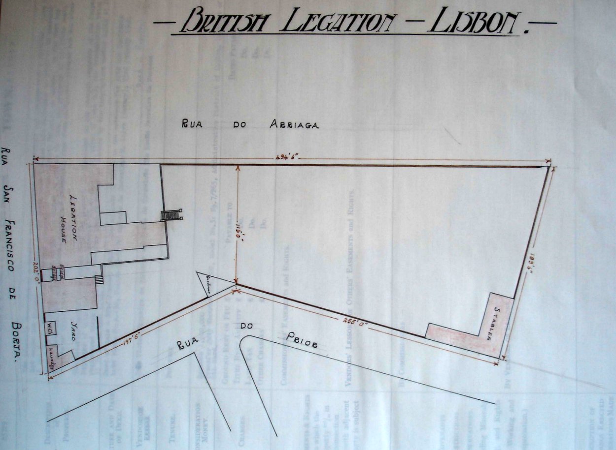 The Palácio Porto Covo, at 35-39 Rua de São Domingos in Lapa, only about 250 metres from the mission house, was bought in December 1940 for £29,000 from the liquidators of Porto Covo and Company. (The chapel, at No.41, which originally belonged to the property, was not part of the purchase.) This late-eighteenth century palácio, with a wide, shallow-U plan, four floors of mostly small rooms but an excellent suite of fine rooms and stair in the centre, and giving on to its own large garden, provided a welcome, good and ready solution to the embassy’s office problems. The interior was widely and handsomely decorated with tiles and frescoes. The cottage in the garden was first occupied by chancery guards, and later became the embassy club. The large vegetable garden was re-landscaped, and a swimming pool and tennis court built. A major drawback was the lack of any parking area but, later, some vacant land nearby was leased as a parking lot.