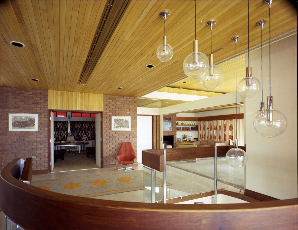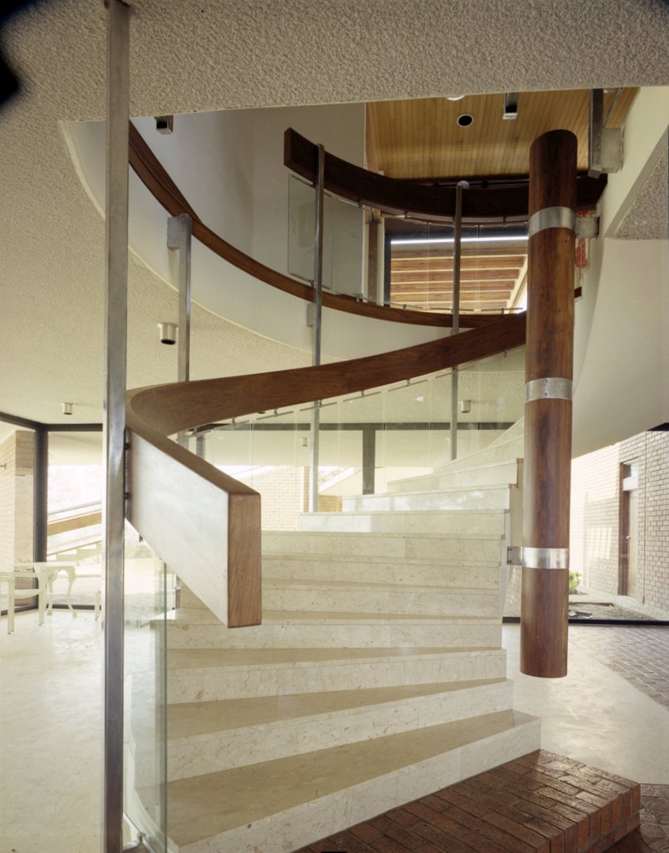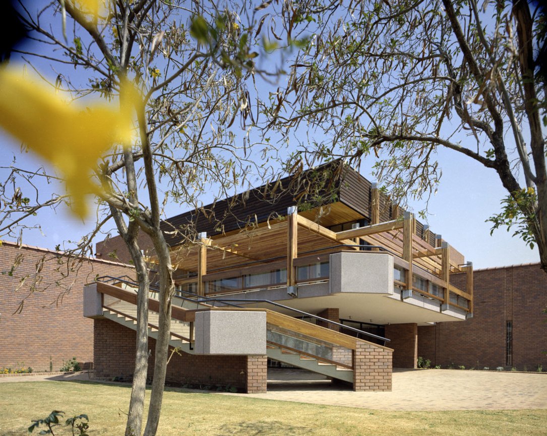 In 1962, the lease on the residence was extended for another ten years, in the expectation that a new residence would have been acquired by 1972 at the latest. In this pursuit, a site of about 1.2 hectares, called Leribe, at 378 Aires Street (formerly 104 Johann Rissik Drive) in the area of Waterkloof Ridge was bought in 1966 for £30,000. A new residence, designed by David Wager in the London office of the South African architectural practice of Gluckman, de beer, Margoles and Partners, was built on this site. It was an inventive residence design for its time: an L-shaped plan, with the entrance hall as the knuckle on the ground floor, and only bedrooms in the limbs of the L on that floor. A circular stair rose from the centre of the hall to a large landing above, which gave on to reception and dining rooms, a study and balcony. The master suite comprised the first floor of the main limb, and the kitchens of the other limb.