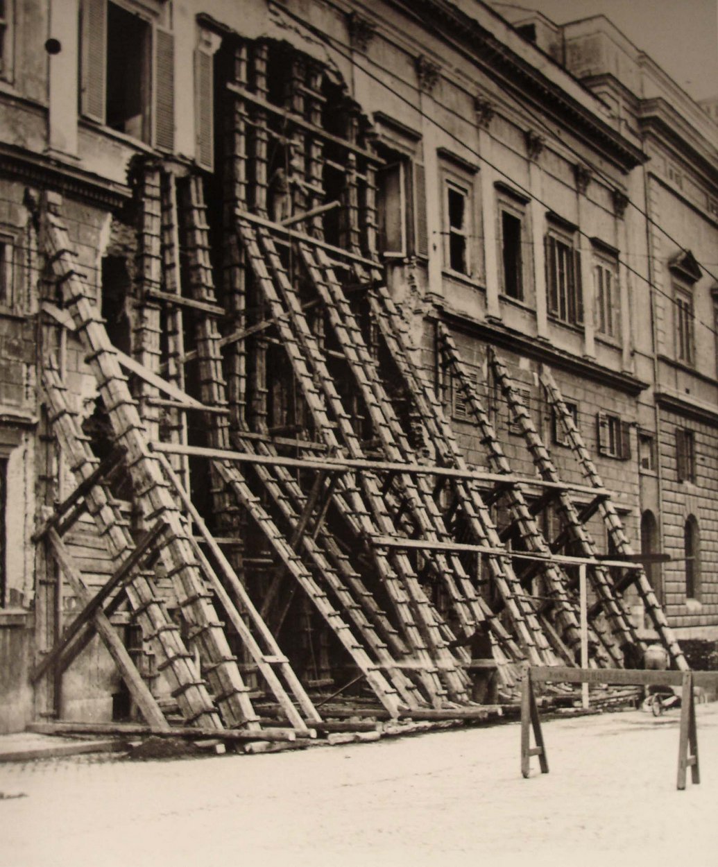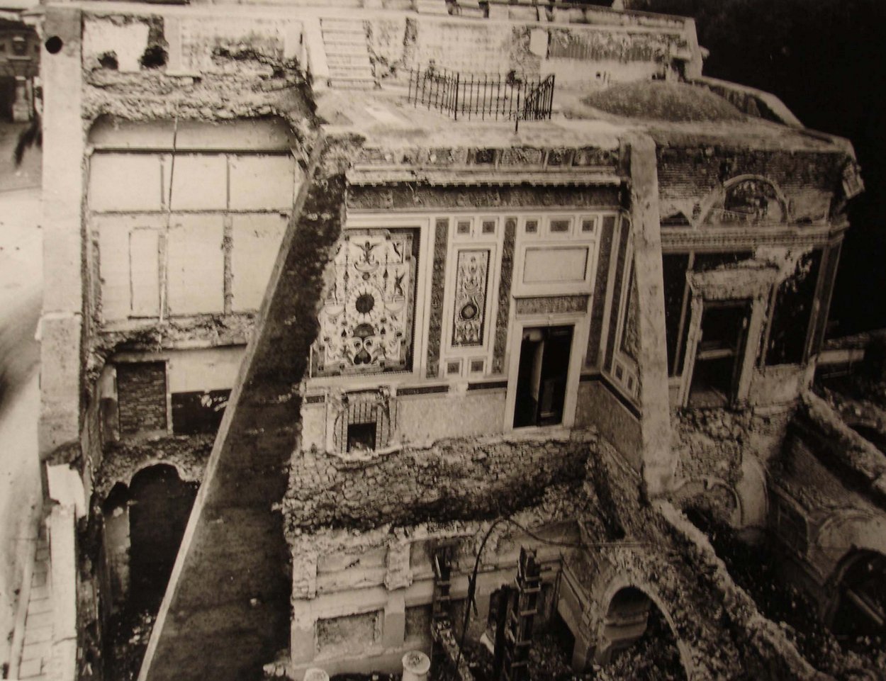 These discussions were brought to an abrupt end in the early hours of 31 October 1946, when the Via XX Settembre house was blown up by two suitcase bombs planted in its main entrance by, it transpired, members of Irgun, a Zionist paramilitary group. The building was looking like a total loss: the main rooms and staircase at its centre were blown to pieces: other main walls were deeply cracked and, if the building did not fall down of its own accord, most of it would soon have to be pulled down. Temporary arrangements were quickly put in hand but the Italian Security Police were soon recommending that the whole embassy should move to premises more easily protected.