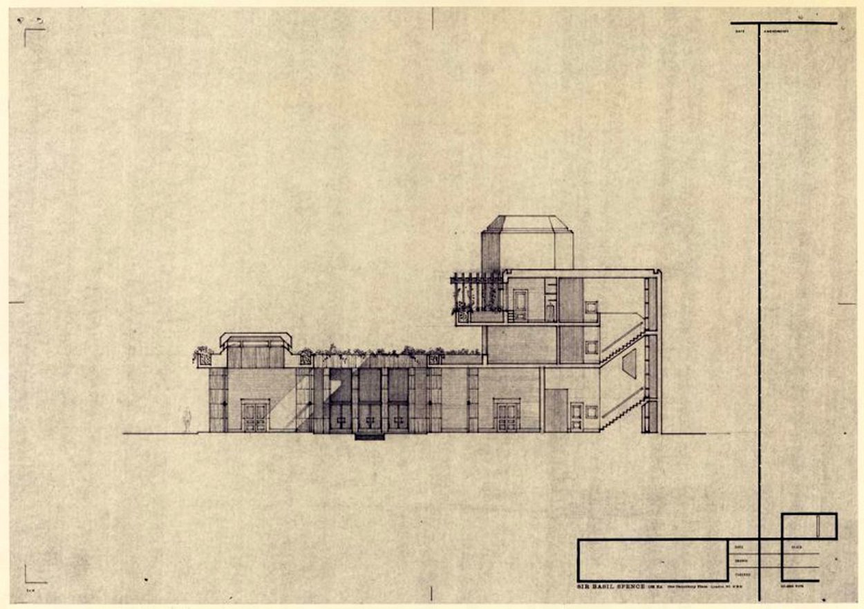 Basil Spence was an obvious choice for the architect, and he was gradually brought into the picture. No announcement about his selection was made at the time but Spence was evidently advising the Ministry privately during 1959 and 1960 while the office accommodation requirements were being thrashed out with the Treasury. The eventual design brief called for embassy offices and residential accommodation for fourteen UK staff and their families on the whole of the Porta Pia site.