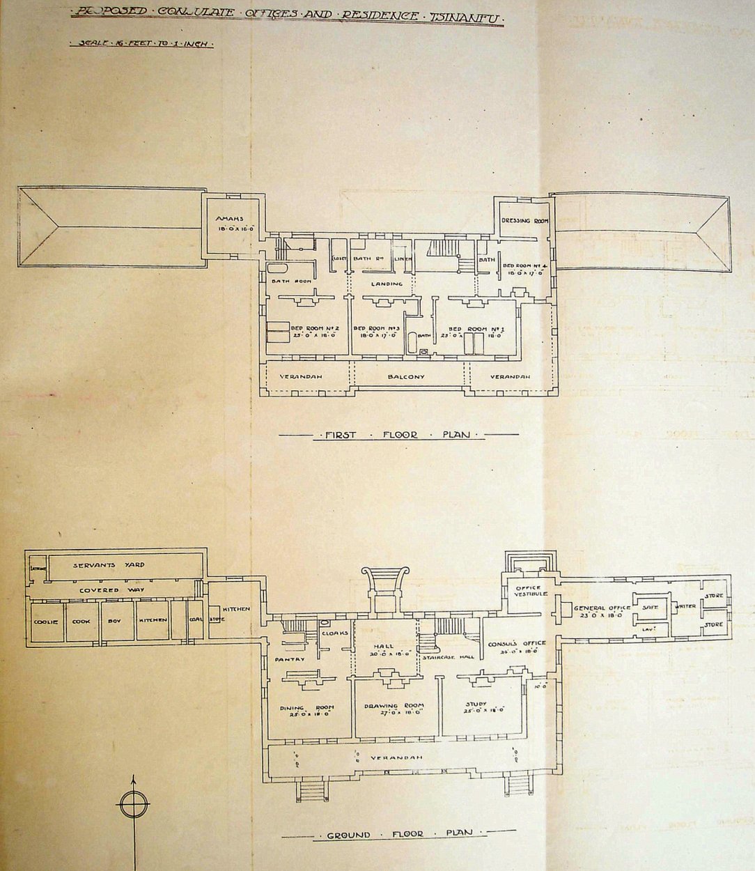 A seaport on the east coast of the province, Tsingtao and its hinterland was a German possession from 1898 until it was captured by the Japanese in 1914. A career consular officer took over as consul from a local merchant in 1919. It was restored to China in 1922. A 2/3 acre plot of land with a three-storey building on it at 35 Hunan Road, at its corner with Yi Shui Road, was leased to the British government by the Chinese government in 1923 and adaptations to it were completed in 1924.