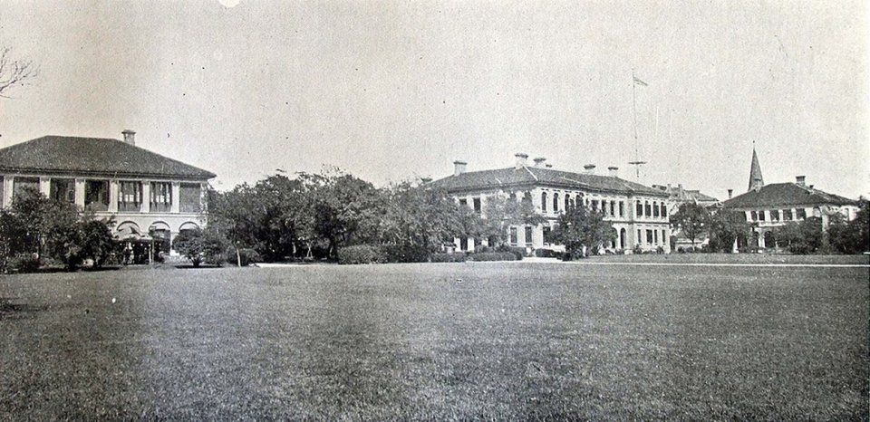 The Shanghai consulate was upgraded to a consulate-general in 1884. The compound was developed with other buildings over the next twenty years, such that by the turn of the century the accommodation in the compound, besides the two main buildings, included residences for a consul, assistant judge (the chief justice always lived off-compound), two vice-consuls, a married assistant, two bachelor assistants, chief clerk to the court, and the Office of Works surveyor/architect, as well as ancillary buildings for compradore’s quarters, sailors’ waiting room, gate lodges, and stables. A fine great lawn graced the Bund and an extremely tall flagstaff proclaimed to visiting ships where to find the British consulate.