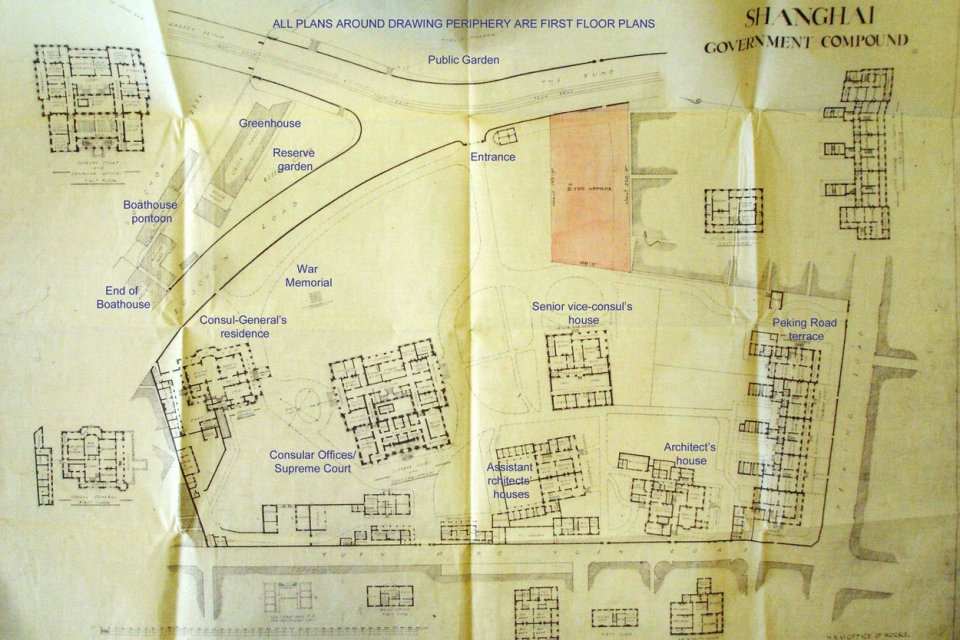 Shanghai was designated a treaty port by the 1942 Treaty of Nanking and a consulate was established in 1843.The first British consul, Capt. George Balfour, quickly laid out the infrastructure that became the Concession area for development by the trading companies. Later, in 1846, Balfour leased from the Chinese government about 15 acres for a consulate between the north end of the foreign settlement and Soochow Creek. A consul’s house, comprising both residence and consulate offices, was completed on this site in 1849, designed and built under the direction of Rutherford Alcock, the consul, and George Cleverly, the surveyor-general at Hong Kong. This house was shortly followed by two houses for vice-consuls and a small gaol in the far south-west corner. James Bruce, 8th Earl of Elgin and High Commissioner to China at the time, wrote of the consul’s residence in March 1858 ‘… a very spacious mansion. The climate, character of the rooms etc. make me feel in Europe again’.