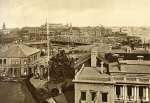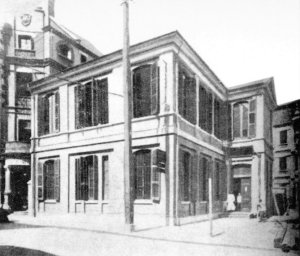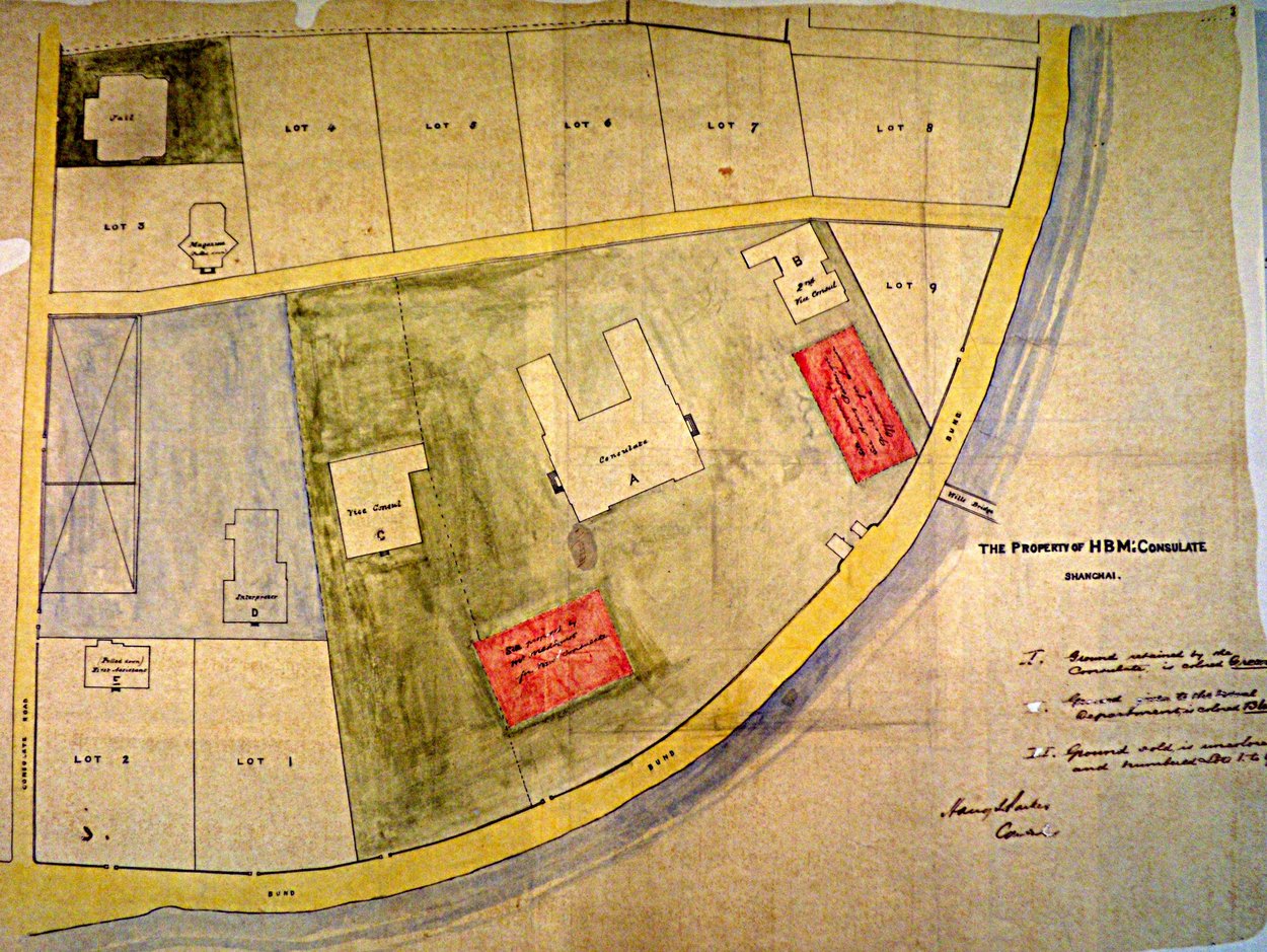 The sale of half the compound in 1862 was in nine lots, numbered clockwise from the south-east corner. The new Peninsular Hotel on the Bund partly stands on Lots 1-2. The British Post Office was built on Lot 3 in [?] the early 1900s and was leased for 99 years to the Governor of Hong Kong in 1905: it was sold in 1925. Lots 4-8, all running between Yuanmingyuan and Huqiu Roads were each developed with significant commercial buildings. Lot 9 became the site for the Union Church, designed by William Dowdall, completed in 1886, extended in 1901, and with an adjacent hall and classrooms. [When were church apartments built?]
