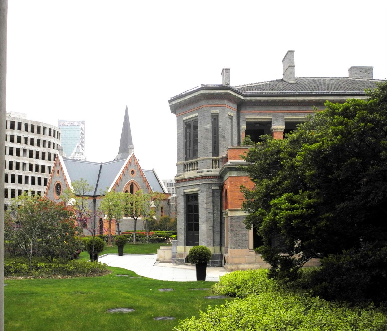 The buildings in the former compound received little attention from the Chinese authorities during the 1990s (though at some juncture [?when] a well detailed and carefully built covered walkway was constructed between the two main buildings]. In [?] 2003, the city authorities established the Waitanyuan project to revitalise the whole area around the former compound and, as part of it, to restore the two main buildings. The daycare centre that by then occupied the old residence was closed, and the white paint stripped off the brickwork. The Union Church building, which had suffered various severe damages, has been rebuilt. In 2008, the surviving 1849 vice-consul house was demolished to enable the construction of the Peninsular Hotel. The former offices /Court building has been immaculately restored and adapted as an important venue, named No.1 Waitanyuan, for meetings and events, managed by the Peninsular Hotel. In 2012, Patek Philippe completed its restoration of the residence and opened it as their major showroom in China for its expensive watches. Handsome heritage plaques on the restored buildings explain their backgrounds (with varying degrees of accuracy).