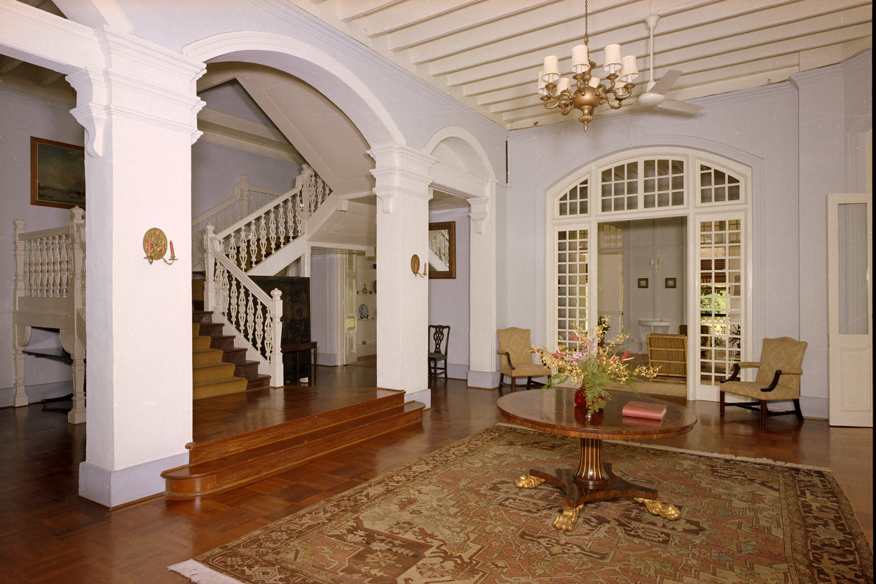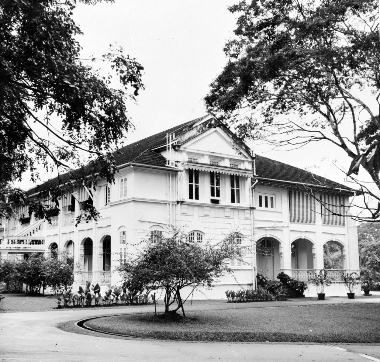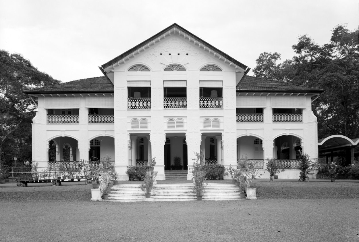 Eden Hall, at 28 Nassim Road (originally designated No. 7), was bought freehold in 1955 for £55,000 as the residence of the Commissioner-General, by then Britain’s senior representative in Singapore. The five acre site, part of the former large Lady Hill estate, was originally acquired in 1903 by Saul Nathan. He permitted his partner, Ezekiel Manasseh, to build a fine house on the site in 1904 and sold the site to him in 1912. The architect was RAJ Bidwell of Swan and MacLaren, Singapore’s leading architect of the period. Manasseh called his new house Eden Hall, likening it to the goblet, in Longfellow’s The Luck of Edenhall, upon which the fate of the family depended. Manasseh leased Eden Hall to a Mrs Campbell, who ran it as a ‘boarding house for bachelors’, until he took up residence himself in 1916 upon his marriage to an English widow, Elsie Trilby Bath, who had two children of her own. During the Second World War, Eden Hall was commandeered by the Japanese Occupation Forces for an officers’ mess: they apparently treated it better than the British forces who succeeded them. Manasseh’s stepson, Vivian Culienen Bath, regained possession of the house after the war and sold it to the Ministry of Works in October 1955 when he retired to Australia to the Ministry of Works for £55,000 as the residence of the Commissioner-General, then Britain’s senior representative in Singapore. Bath insisted that a plaque should be installed at the foot of the flagpole with the inscription “May the Union Jack fly here forever”.