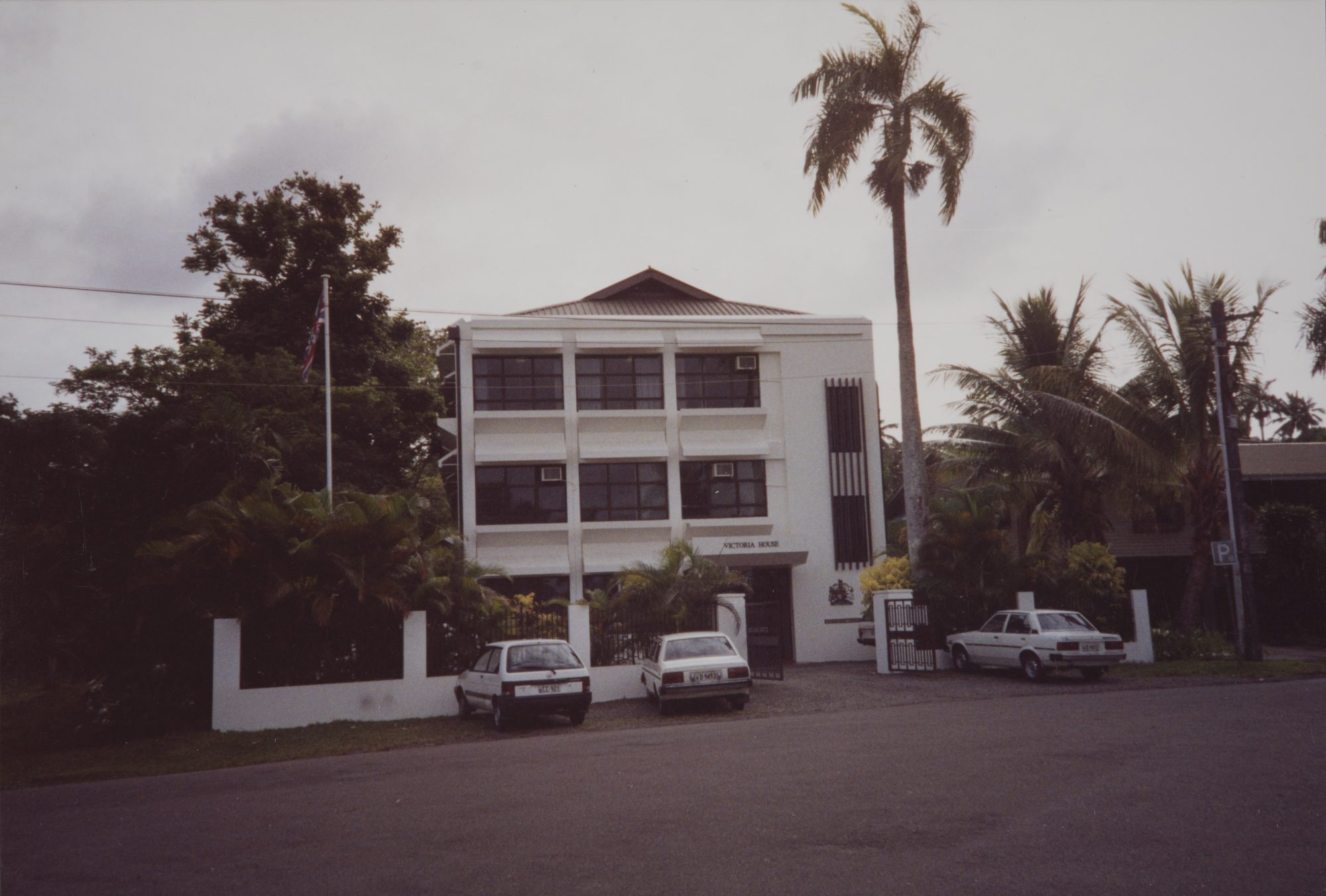 Fiji became independent within the Commonwealth in 1970. At that time, the government of Fiji leased Gordon House on Cakobau Road, built in 1964 as the official home of the former chief secretary, as the British high commissioner’s residence. The five-year licence arrangement was replaced in 1988 with a 99-year groundlease from 1 July 1987. The offices were leased in the New Town Hall from independence to 1985, when they moved, on a ten-year lease, into the newly-built three-storey Lynica House, later called Victoria House, on Gladstone Road. The lease contained an option to purchase the building for ten times the annual rent at any time after 1 January 1990: this option was exercised in [? date].