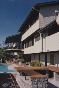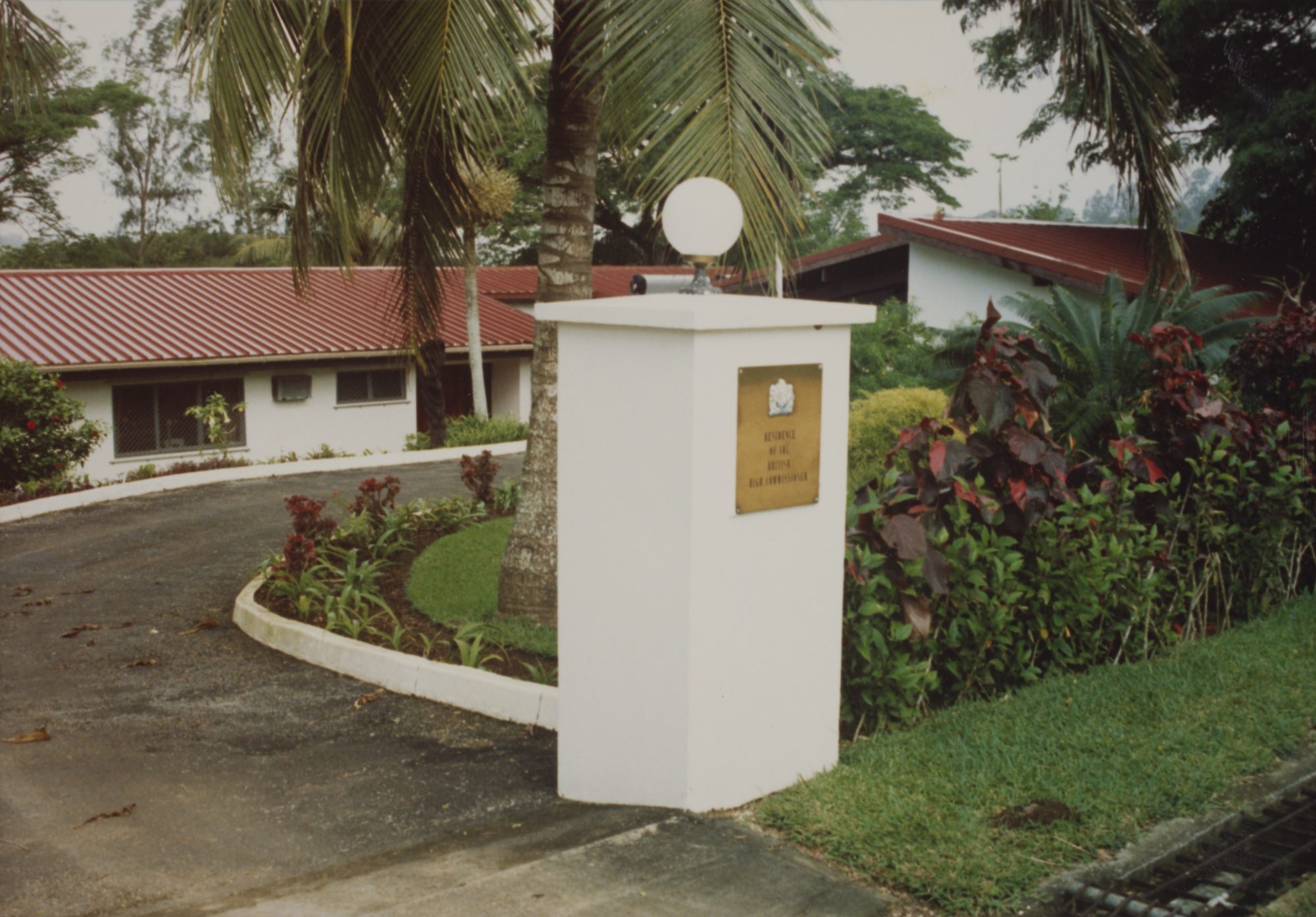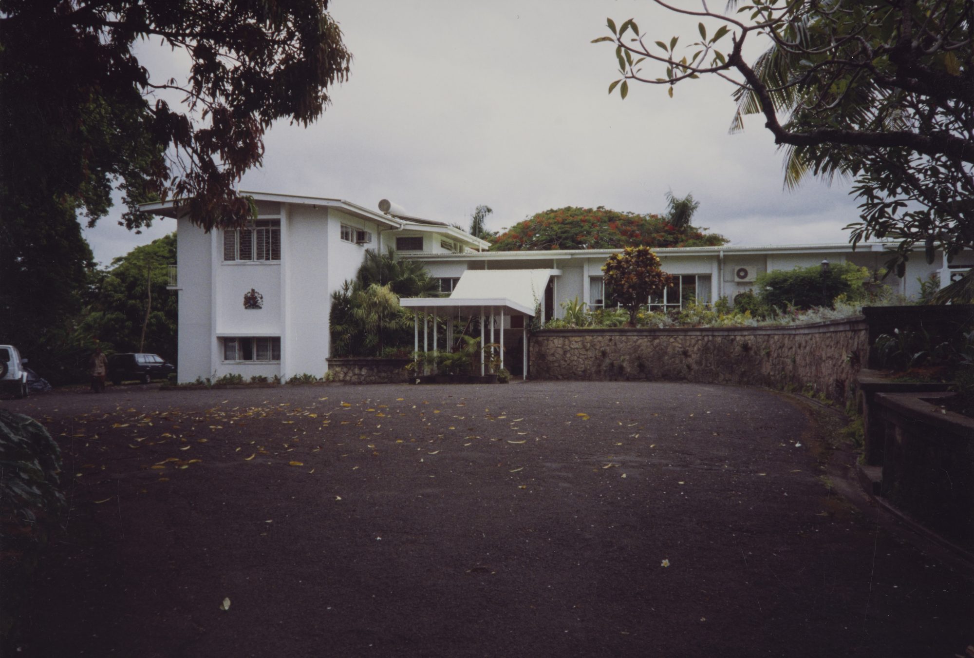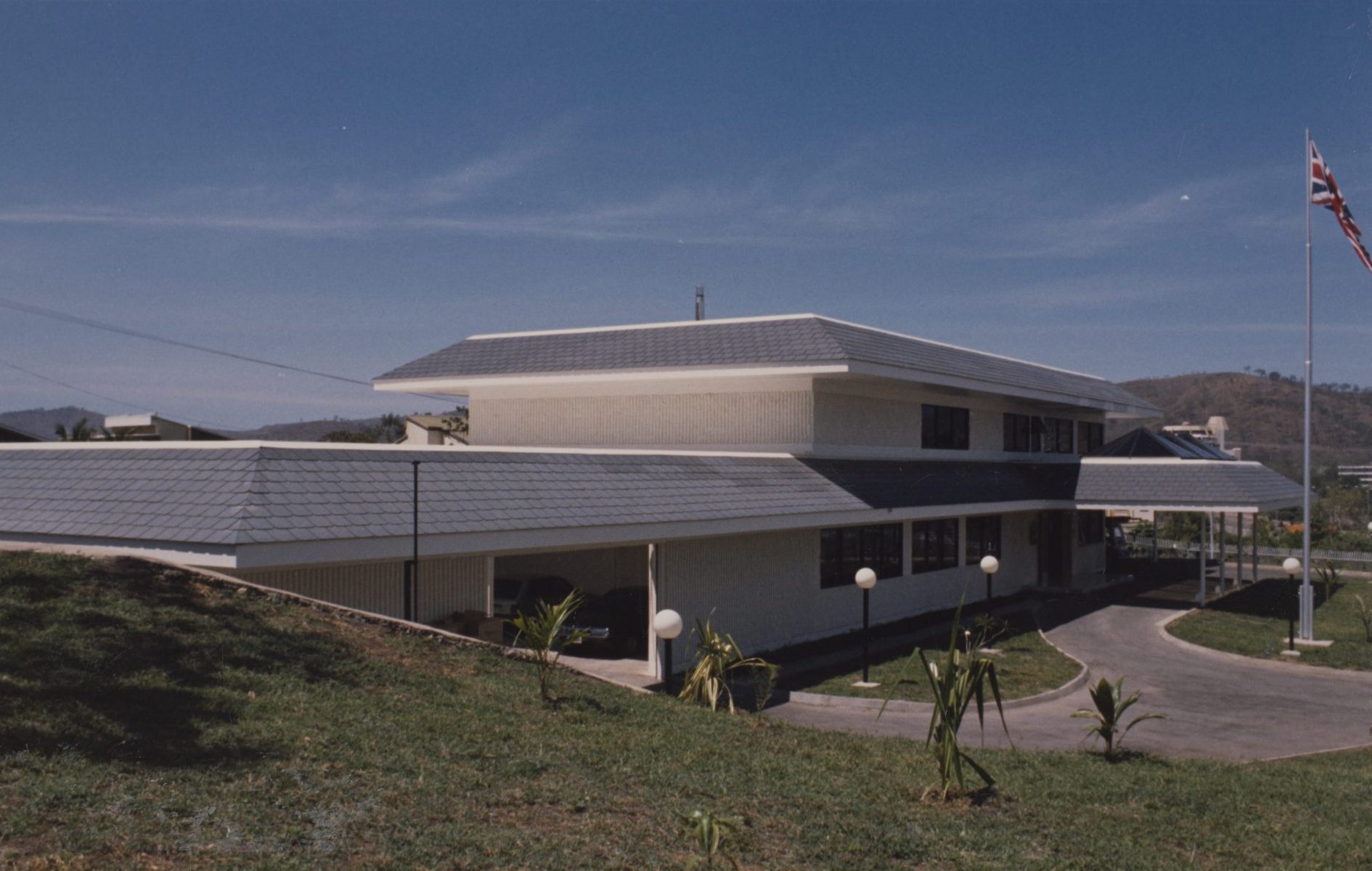 With independence approaching, a prospective residence, called Moresby House, was instead leased for 99 years from June 1974 at Allotment 77, Section 51, Touaguba. This property proved too small for the representational demands on the residence, and in the mid-1980s FCO architects and John Wild produced new designs for a residence and two smaller houses for the two vacant leased sites. These were all occupied in 1986. Moresby House was sold in 1988.