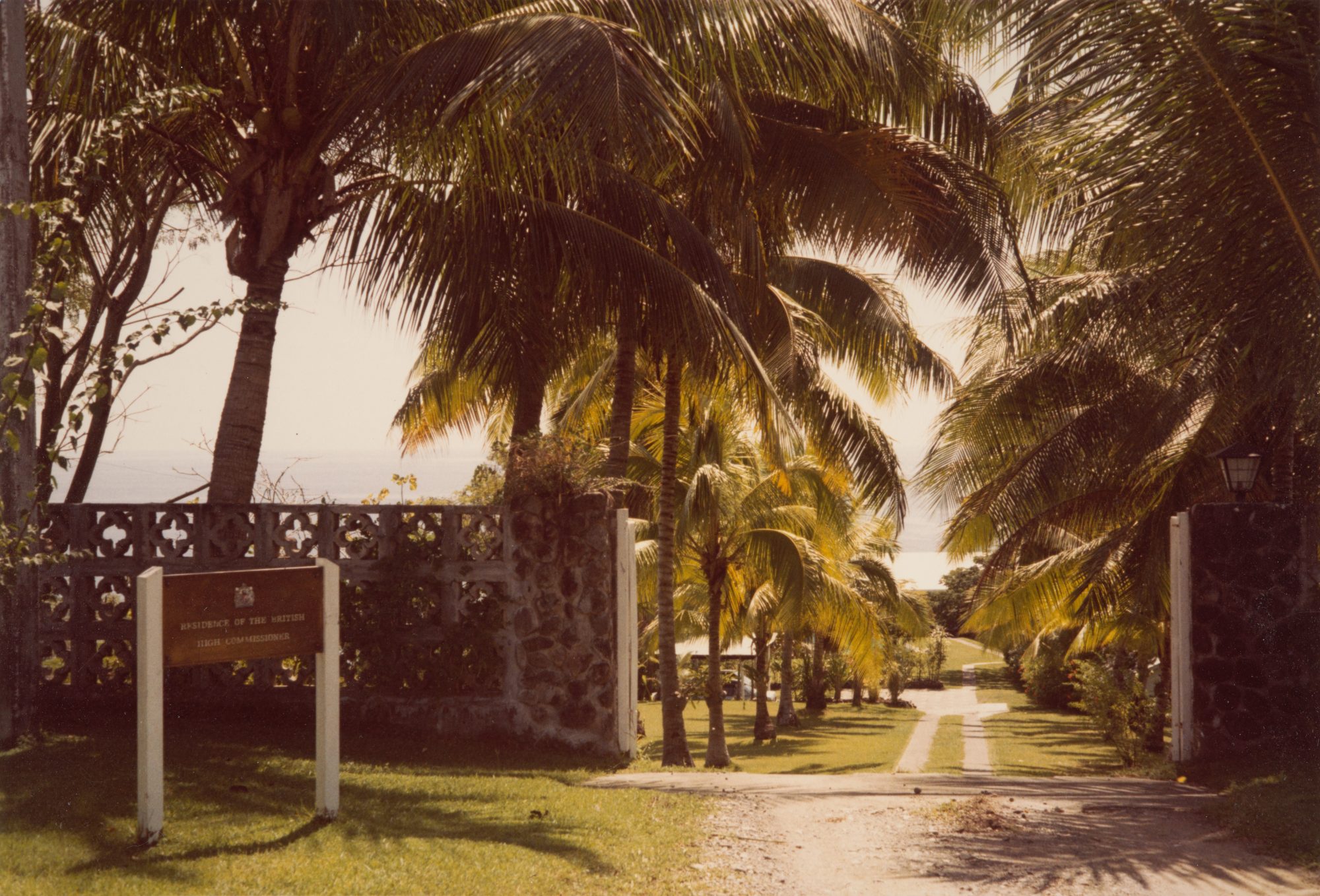 Tonga was a British protectorate from 1900 until 1970, when it gained independence within the Commonwealth. A 1.2 hectare site on Vuna Road, next to the palace and close to the sea shore, was leased from the Tonga government for fifty years from 1951. On the site were the residence, a spacious colonial timber bungalow, and the office, a timber hutment, both built in the early-1900s.