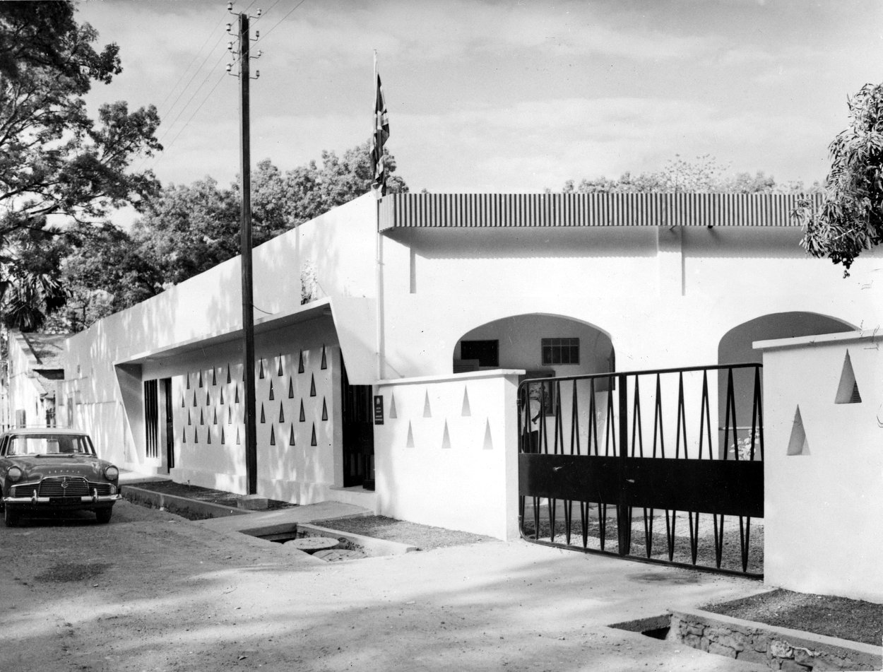 Guinea gained its independence from France in 1958. The old part of Conakry was on the small island at the tip of the Kaloum peninsular, up which the modern city has grown. The first embassy office, and several of the first flats for UK staff, were leased in 1960 in Le Paternalle, at the time the town’s largest building of about 15 floors with a podium. The offices moved in 1961 into a converted clinic on the south side of the island, on which a nine-year lease was taken. By then, the Post comprised nine UK staff, five of whom lived in flats in Le Paternalle.
