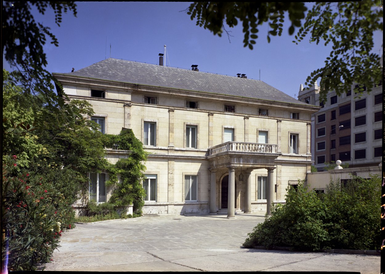In 1969, the owners of a property adjacent to the Hermanos Bécquer residence proposed to erect a multi-storey building on their site. Fearing serious over-looking, London resolved to move the residence and in 1970 bought a site in the excellent residential district of Puerta de Hierro, at the corner of Calle de Guisando and Calle de la Isla de Oza, on which to build a new residence. This site cost £102,000 and construction costs were expected to be about £180,000. The adjacent development was being slow to start and it appeared in 1971 that the over-looking threat might have passed. In 1972, however, the adjacent site changed hands again and its new owner, Banco Coca, proposed building a 12-storey office building next door. By this time, the Hermanos Bécquer 3 house itself was the subject of a preservation order, which much reduced its value should the Ministry of Public Building and Works come to sell it. In these circumstances, Ministers decided that the residence should be retained and the contingency site at Puerta de Hierro sold. As construction of the Banco Coca building progressed, however, and soon after the Puerta de Hierro site had been sold, it became clear that retention of the residence at Hermanos Bécquer 3 was, after all, untenable, and it was sold in 1980.