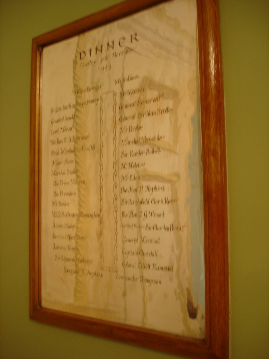 The high point in the life of the State rooms came on 30 November 1943 when, during the Tehran Conference, Churchill celebrated his 69th birthday in the State dining room, with President Roosevelt seated on his right and Marshal Stalin on his left. The event, and the seating plan, were later recorded by silver plaques. The status of the mission was raised to an embassy in 1944, during the incumbency of Sir Reader Bullard.