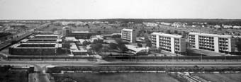 32. New Delhi. An enormous building project with three blocks of married staff flats; one of bedsits for singletons; messes, clinic, club, sports hall, and other recreational facilities; and extensive local staff quarters.