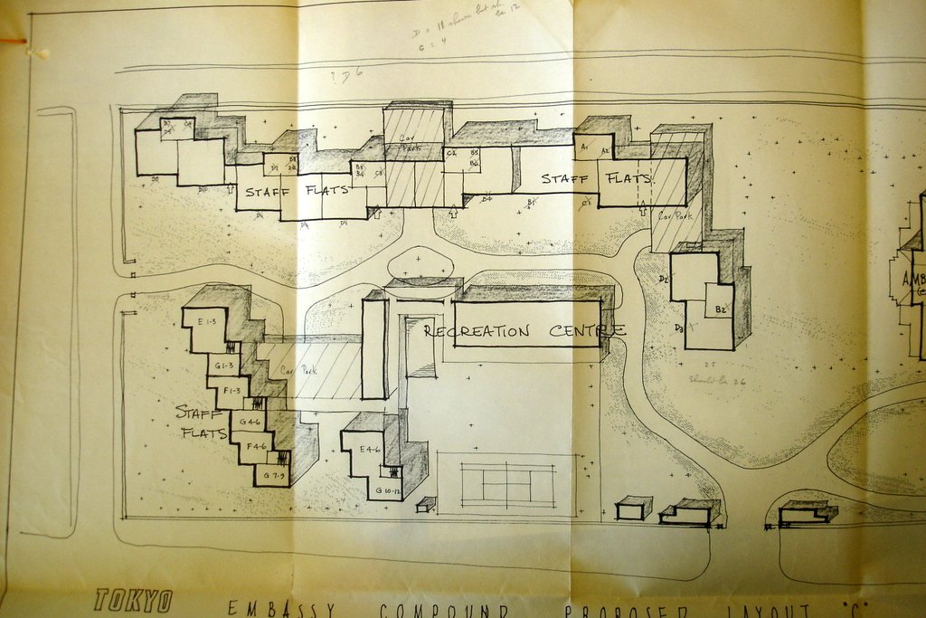 Radical arguments were under way in the later1960s about extensive demolition of compound buildings and their re-provision to a much greater density. Some absurdly ill-judged redevelopment schemes were proposed by Ministry architects. Even the residence was threatened. The ambassador, Sir John Pilcher, ended his defence of it to the secretary of state on 20 June 1969 by saying that ‘Japanese who come to my house say they have taken a trip to a country house in Oxfordshire. Why destroy so happy an illusion?’.