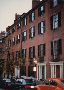 The residence, at 15 Chestnut Street on Beacon Hill, was bought in 1972 for £80,000. It was designed by Charles Bulfinch, and built in 1805 as the middle of three houses that Hepzibah Swan built for her three daughters: it is now part of the Beacon Hill National Historic Landmark District.