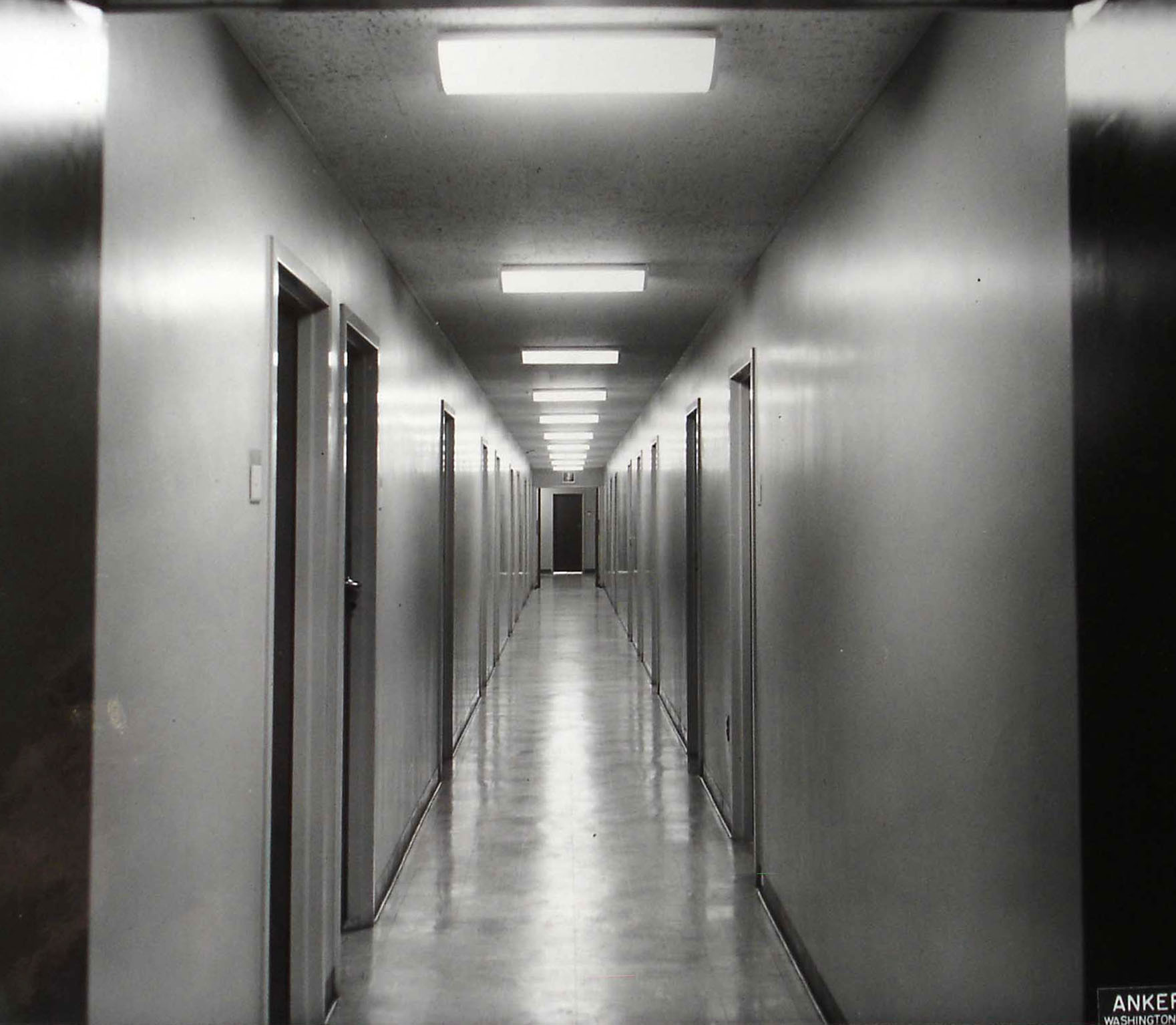 Bedford took the scheme to Washington in April 1956, primarily to show the ambassador, Sir Roger Makins, who answered the foreign secretary’s request about what he thought of the plans with ‘they looked too much like a modern factory to fit well into that part of Washington’. The sketch plans were nonetheless accepted and a £1.0 million cap was set on the cost. This brought cost-saving measures into consideration, including eliminating the underground passage between the new and old buildings and instead including a study for the ambassador in the new building, accessible by a private back door and stair. The design was a four storey hollow square, with two more storeys over the north-west side of the square, and three more over the north-east side.